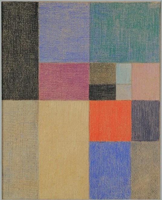 Gouachen wie »Ohne Titel« oder die »Stickerei« zeugen von einer Kunstgewerblerin, die ihren Weg in die bildenden Künste suchte. In Anatole Jakovskis Publikation über die Künstlergruppe Abstraction-Création sind zwei Gouachen abgedruckt (Jakovski 1934, S. 46), die heute beide den Titel »Formes élémentaires en composition verticale-horizontale« tragen (Werkverzechnis-Nr.: 1917/8 und 1917/9). Neben ihren abstrakten Gemälden und Zeichnungen wurden also schon zu Lebzeiten Arbeiten dieser Serie publiziert, die gänzlich aus dem kunstgewerblichen Kontext herausgelöst scheinen. Die »Compositions verticales-horizontales« beweisen die frühe Auseinandersetzung mit dem Abstrakten. Damals ohne Zusammenhänge mit der angewandten Kunst gezeigt, sind die textilen Resultate heute ebenso angesehen und können dieser Gruppe zugeordnet werden (vgl. Krupp 2021 I, S. 31f.). [Laura Hillers]