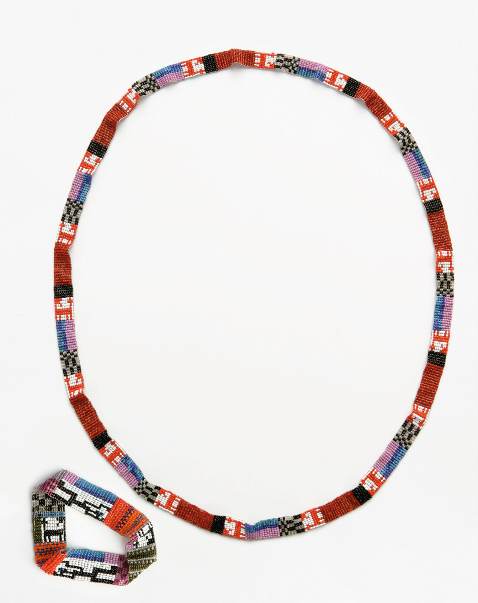 Von Louise Bourgeois bis Yoko Ono. Schmuck von Künstlerinnen Sophie Taeuber-Arp, Halskette, um 1918/1920er-Jahre und Armband, um 1920, Arp-Museum Bahnhof Rolandseck, Remagen – Foto: Mick Vincenz Gruppenausstellung21. November 2025 bis 26. April 2026, Museum für Angewandte Kunst Köln
